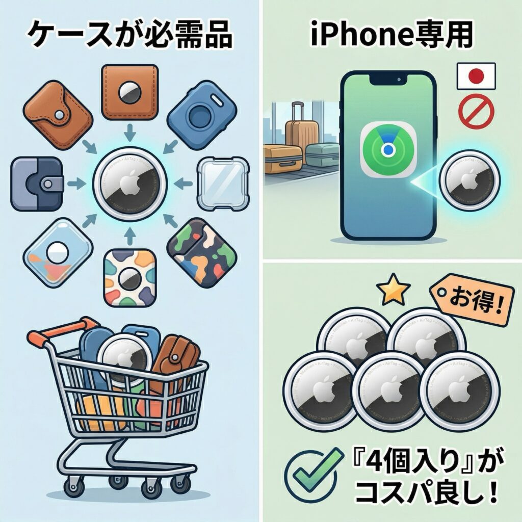 最高に便利なAirTag(第2世代)ですが、購入前に知っておくべきポイントがいくつかあります。